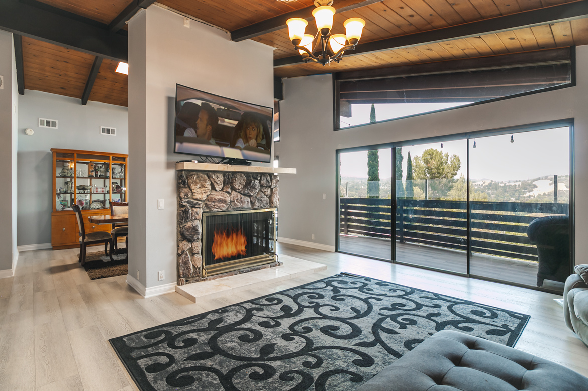 Rare opportunity to have this outstanding five bedroom/four bathroom, South of the Boulevard, Woodland Hills Home. Incredible updates throughout. Don’t miss the multi-purpose bonus room downstairs. There is an abundance of natural light and spacious living on the first floor with sky lights in the living room and kitchen. The main entry leads to vaulted wood beamed ceiling in the living room with fireplace. This opens to a large chef's kitchen with center island and stainless-steel vent top. The kitchen has a farmhouse sink, all newer cabinetry, plus plenty of cabinets space; very convenient for holidays and parties. The first floor also has a guest bedroom and 3/4 bathroom. The second floor has 3 bedrooms, each with fantastic views and access to a private balcony! The very spacious master suite has walk in closet, a fireplace, separate tub and shower and a bonus sauna. The other bathroom on the second level features a jetted tub. This house also has a second floor laundry area with new washer and dryer included. The backyard is immersed in nature complete with fruit trees and a large concrete area. There is plenty of room left for a vegetable garden or a quiet fabulous retreat to read, paint or play. This peaceful home is a great combination of luxury, location, and spectacular western sunsets. Located minutes to the Village, Westfield Mall and Topanga/Malibu beaches.