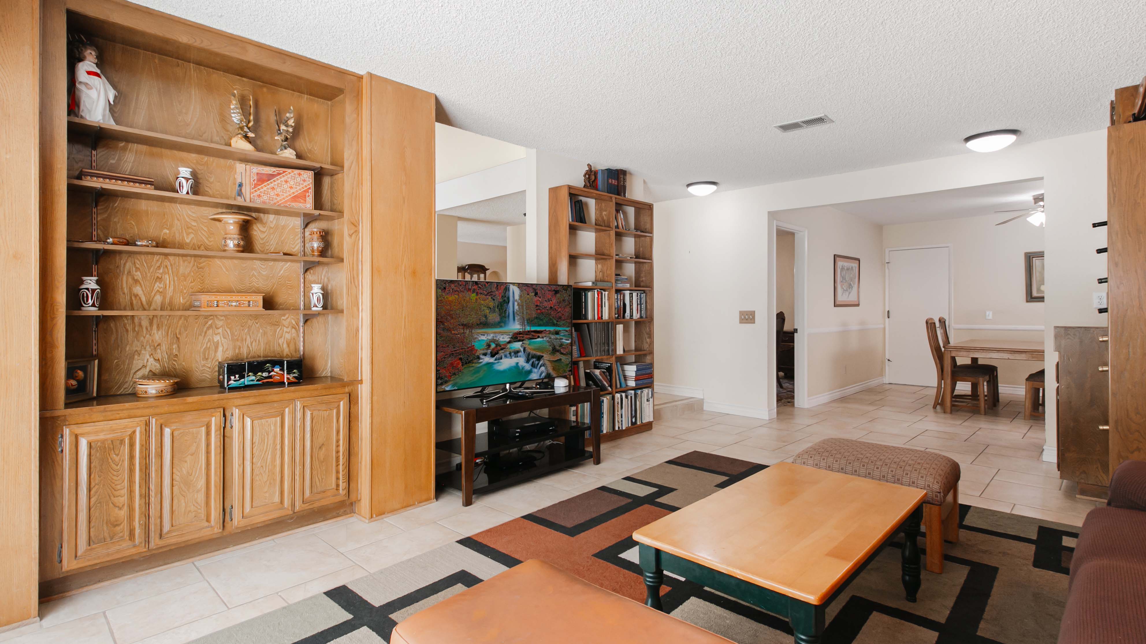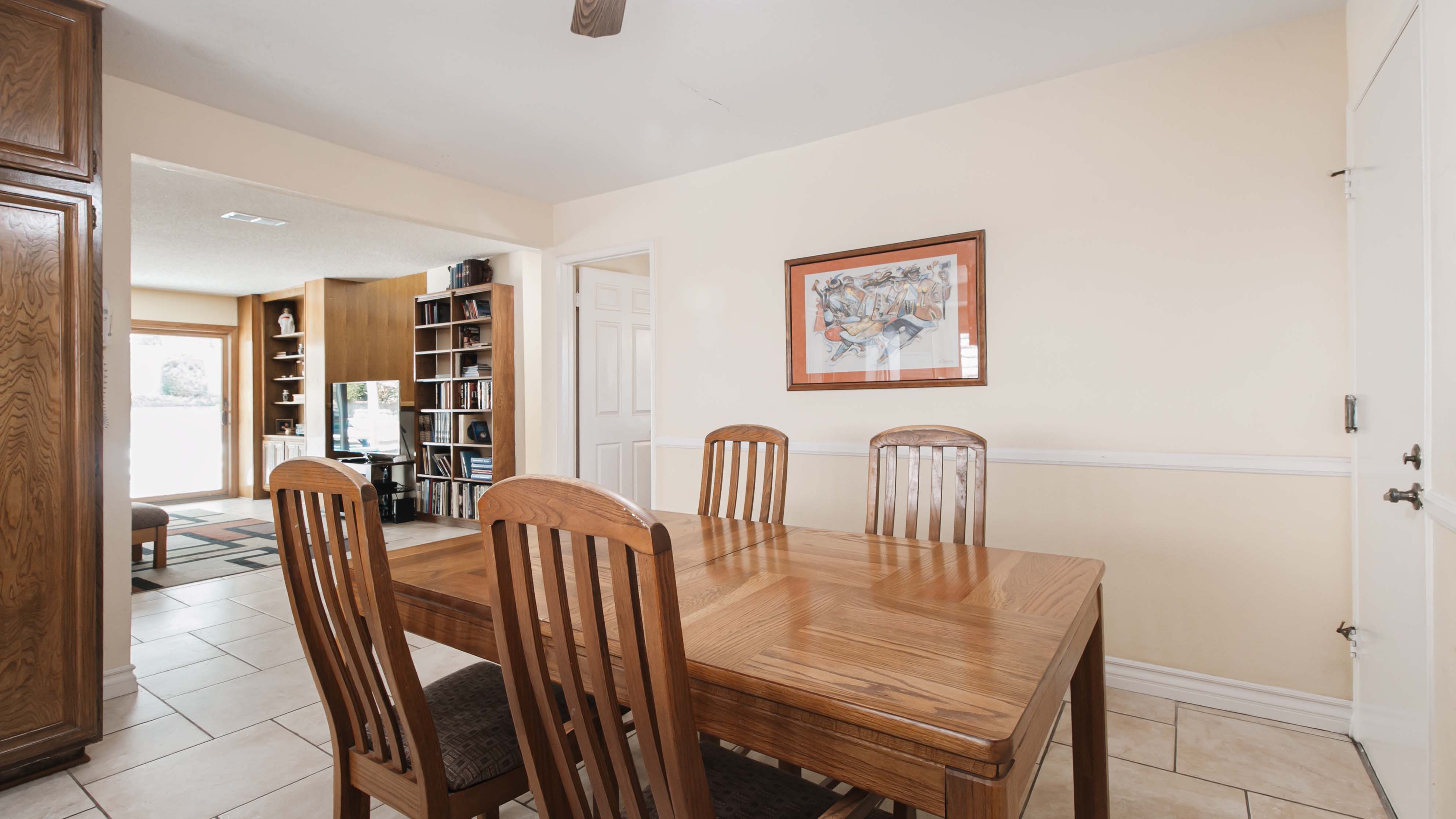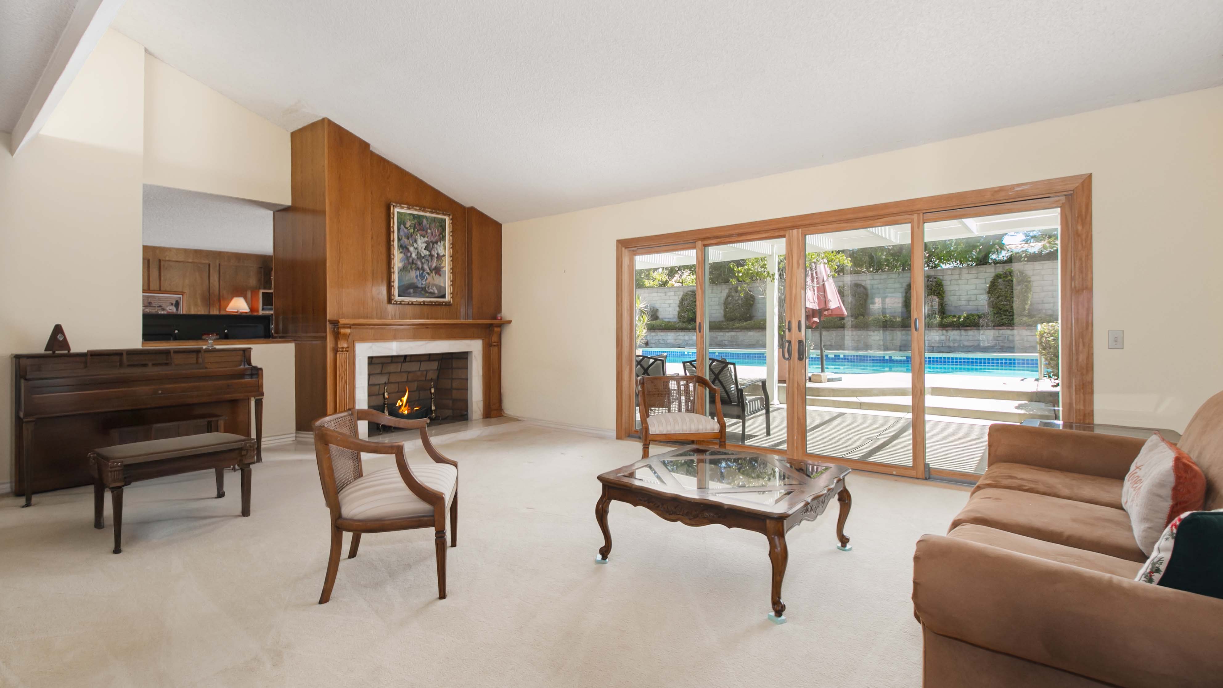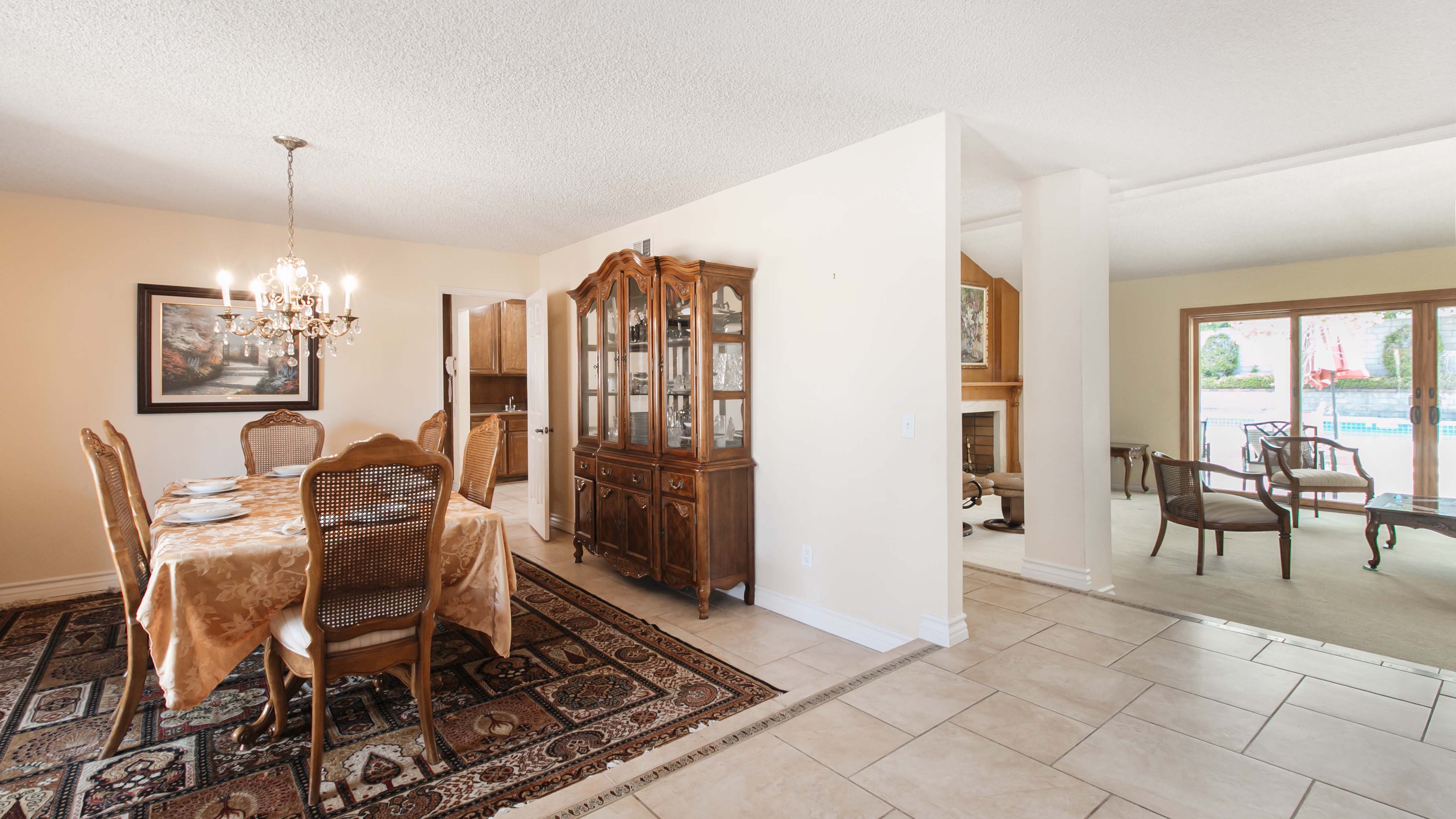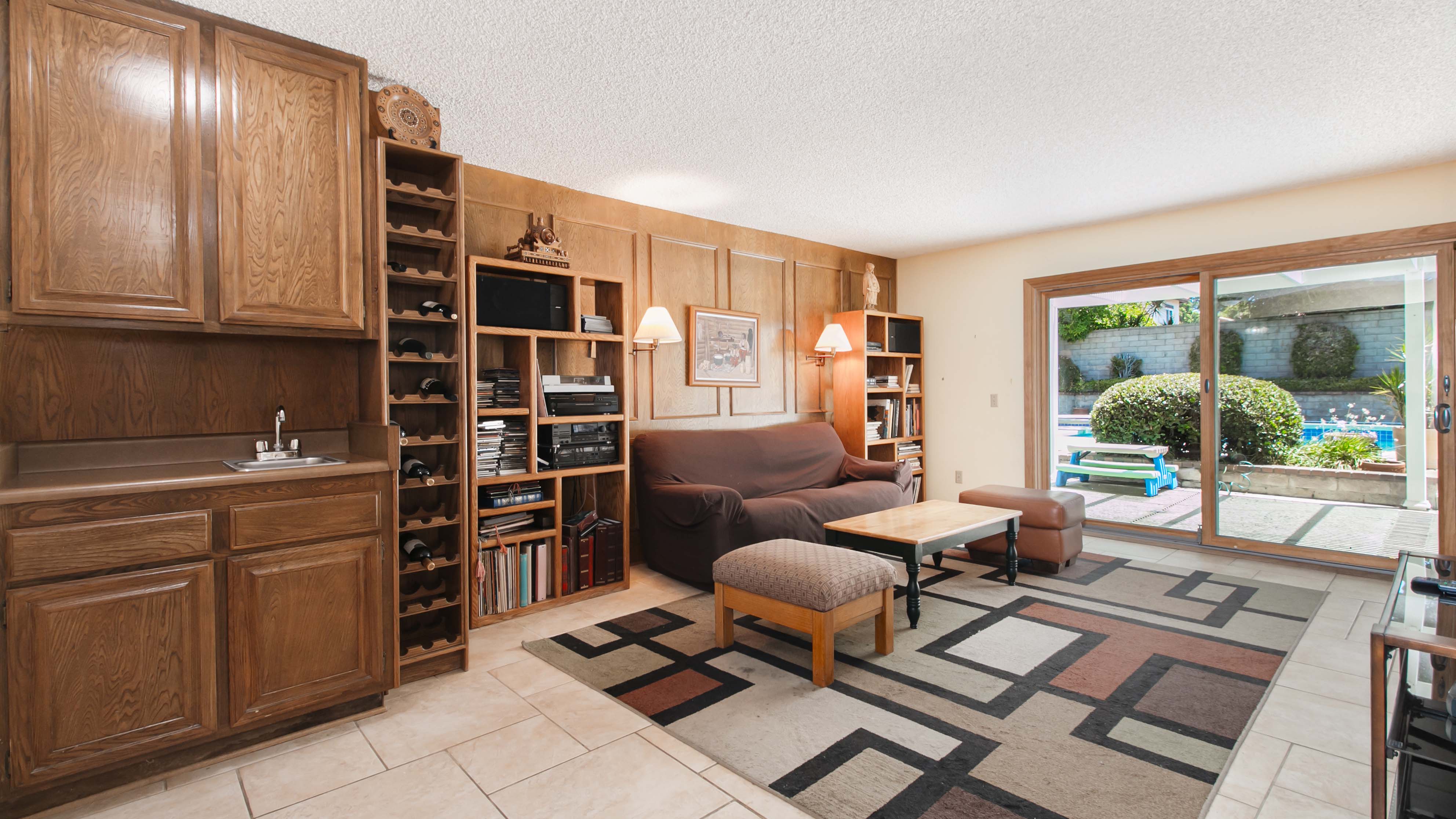 The wait is over, take a gander at this single-story pool home. Enter your home and check out the formal Living Room complete with vaulted ceilings, wood paneling, fireplace and a great view of the yard. Envision the step-down dining room with family, or guests, enjoying a Holiday meal or festive occasion. Relax in the family room while enjoying a beverage from the wet bar. Smell the cooking in the large kitchen, lots of counter top space for preparing meals and plenty of cabinet space for the cooking accessories. The adjacent laundry room has additional storage and pantry space. Nice sized bedrooms with laminate floors. Guest bath with shower – tub combo and dual sinks. Master suite with walk-in closet, view of the yard and a large master bathroom boasting a soaking tub with jets, separate shower and dual sinks. Enjoy the yard featuring a large covered patio, grassy area, built-in BBQ, pool and spa. A three car garage completes this spacious home.