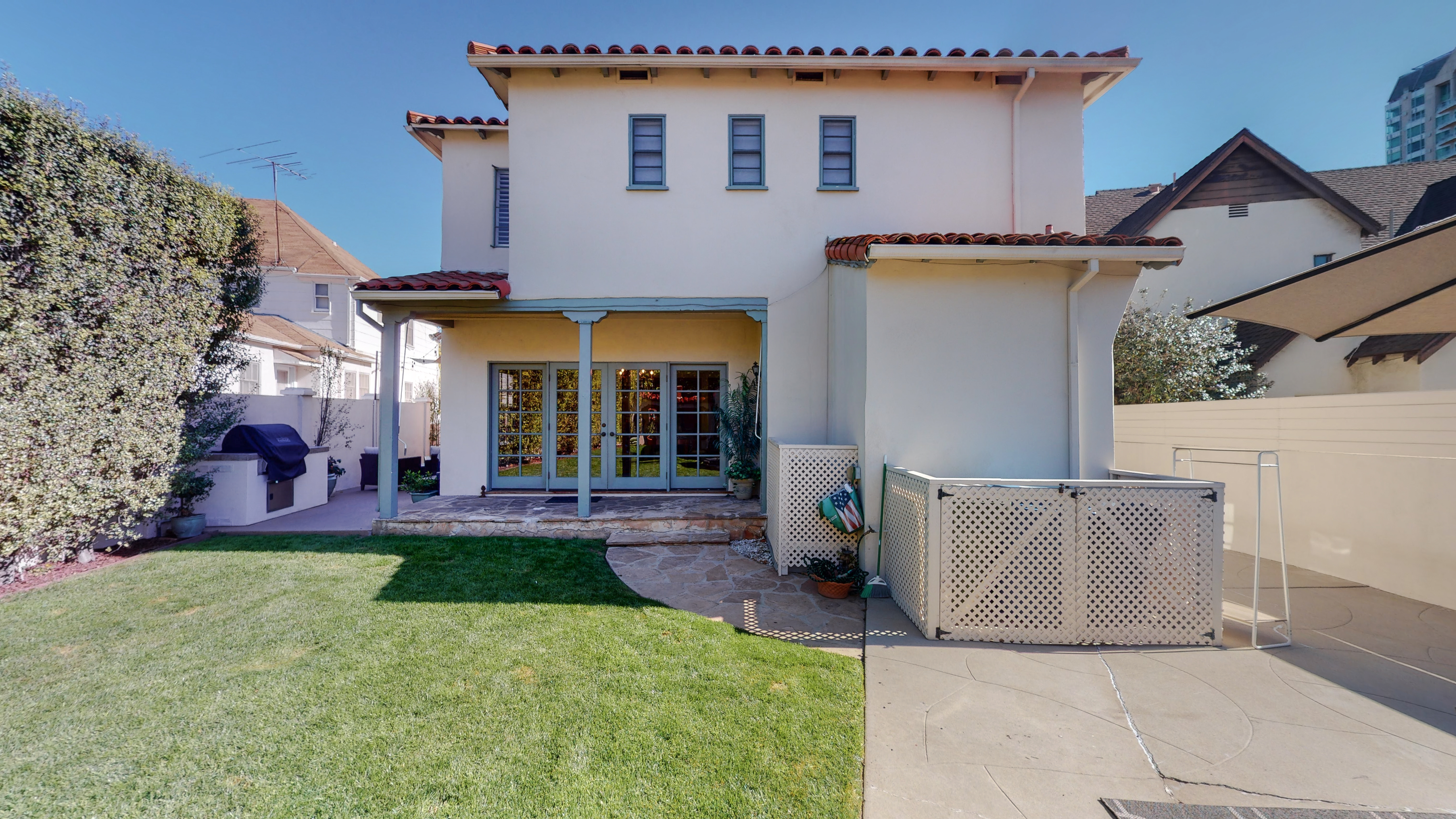 As you walk though the front door, you are greeted by a beautiful entry way, step down living room with gas fireplace, cozy family room, formal dining room with French doors leading to a sizeable backyard featuring a BBQ, fire pit table, and plenty of open lawn space for kids and pets, as well as a large recreation room with built-in surround sound, perfect for family movie night or game day. Gourmet kitchen with granite counter tops and stainless steel appliances, butlers pantry and dry bar. Downstairs guest room with full bathroom. Upstairs are 2 kids bedrooms, each with their own private, updated bathroom and walk-in closet as well as an upstairs den that makes a perfect home office. Enter your master suite with plantation shutters and a balcony overlooking the front yard, a walk-in closet for her, and separate reach in closet for him. A spacious and dazzling master bathroom, wonderfully updated with marble countertops, frameless shower, and elegant tile. Come see this one right away. This is the Little Holmby gem you have been waiting for!