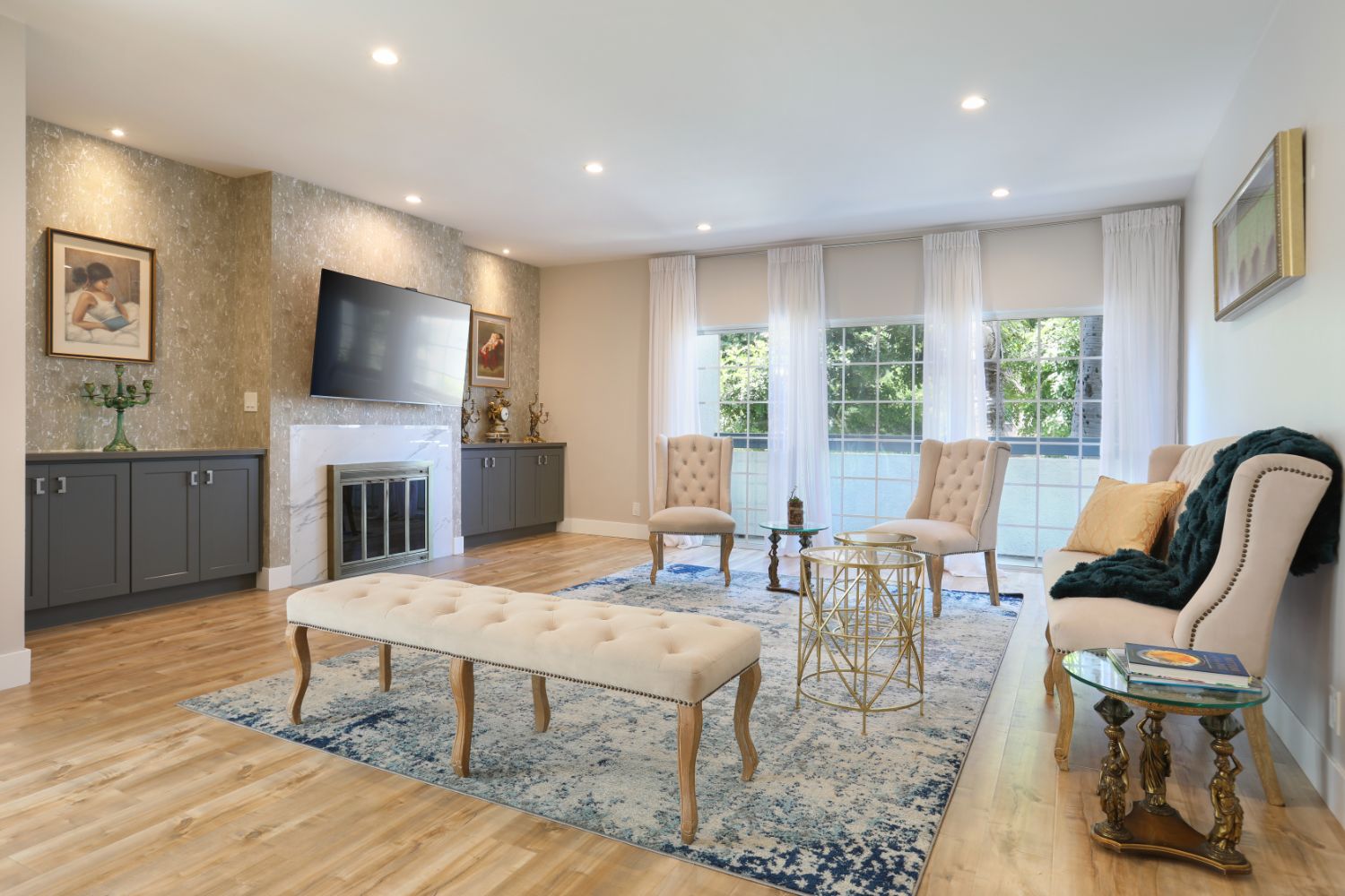 Stunning Custom-Designed Modern Unit, Totally Gutted & Remodeled With The Finest Materials From A To Z, Done To Perfection Ready For The Most Discriminating Of Buyers With All Brand New Systems In Desirable Prime Corner Location. High Ceilings, LED Lightings & Balconies In Every Room With Elaborate Floor To Ceiling Sliding French Doors For Plenty Of Natural Light, Including Dining, Living & Both Bedrooms. Bright & Spacious Living Room With Fireplace, Elegant Wine Closet & Bar And Adjoining Dining Room With A Sprawling Open Floor Concept Are Perfect For Entertaining. The New Large Gourmet Kitchen Is Complete With Viking Appliances Including Professional Viking Range Hood, Farmer Sink, Abundant Cabinetry & Magnificent Oversized Eat-In Island Breakfast Area. The Private Master Bedroom Suite Is Elegantly Spacious With A Delightful Balcony, Customized Walk-In Closet & Luxurious Spa-Like Bath With Double Sinks, Separate Shower/Marble Bench, Bathtub, Illuminated LED Mirror, Bluetooth Speaker, Fan & Colorful light. Beautiful Modern Hallway Bathroom Has A Steam Shower, Bidet & Bluetooth Speaker, Fan & Colorful light As Well. Laundry Area With Quartz Countertop For Folding, Electric Outlet For Ironing & Full Custom Cabinetry On Top For Extra Storage Space. Every Inch Even All The Walls Have Been Renovated With Top Quality Finishes & Fixtures. Enjoy The Tranquil large Pool & Jacuzzi, 2 Car Garage Parking, Extra Storage & Bike Room In The Garage. Once You Are Ready To Venture Out Onto The Town, You Will Find You Have Easy Access To All, Westwood Village Cultural Attractions, UCLA or upscale Century City Outdoor Shopping Mall With world Class Dining, Theaters, Shops And Entertainment Just Minutes Away.