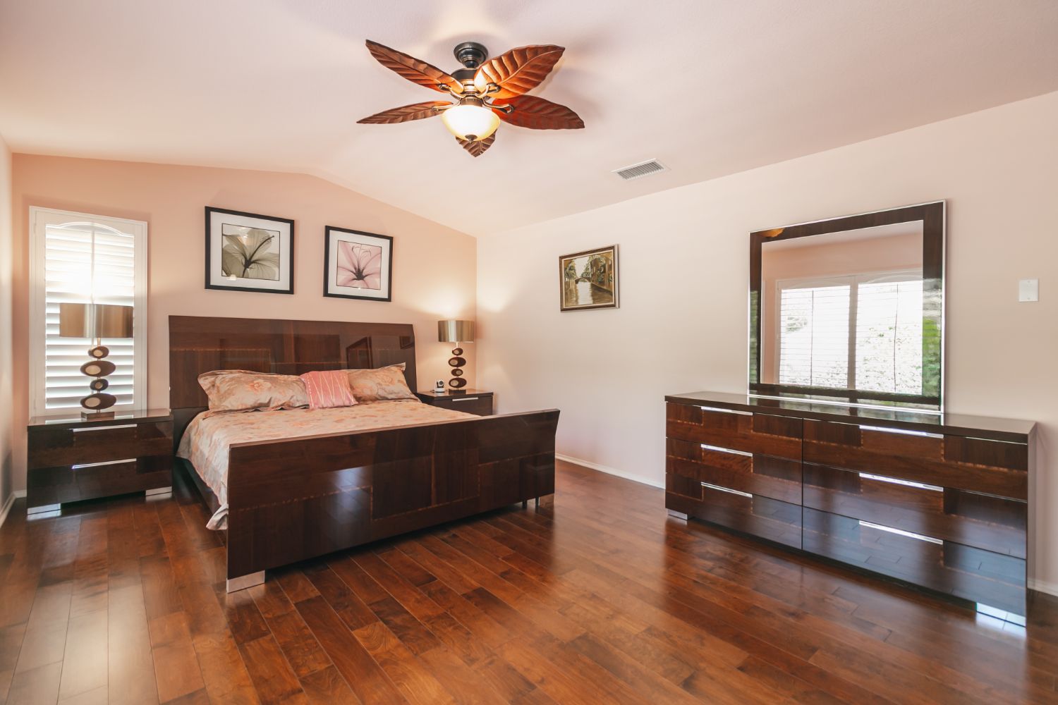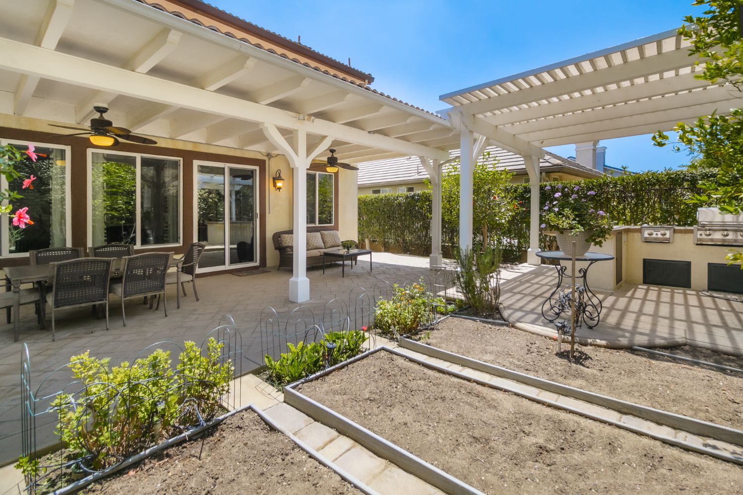 Spanish Style home in the guard gated community of Sorrento. This beautiful 3 Bedroom, 3 Bath home is designed for entertaining. Enter this home and enjoy the two-story ceilings, plenty of windows to enjoy the natural light to compliment the wood floors. Formal Dining Room perfect for the entertainer. Gourmet Chefs can enjoy the open kitchen overseeing the great room with custom designed wall and entertainment center. Walk up the stairs and welcome to your work area for the remote working family. All three bedrooms are upstairs including the master suite with mountain views. The master bathroom has a walk-in closet with built-in features, jacuzzi style tub and separate shower. Ceiling Fans, plantation shutters and Brand-New HVAC system. Your tranquil yard features a built in BBQ with seating, covered patio for relaxing the in the yard and a garden awaiting your culinary desires. This Community Offers 2 Pools & Spas, Playground and Picnic Area. The community is close to Parks, Hiking Trails and "The Vinyards" that boasts dining, shopping and entertainment. Porter Ranch K-8 Community School is minutes away.