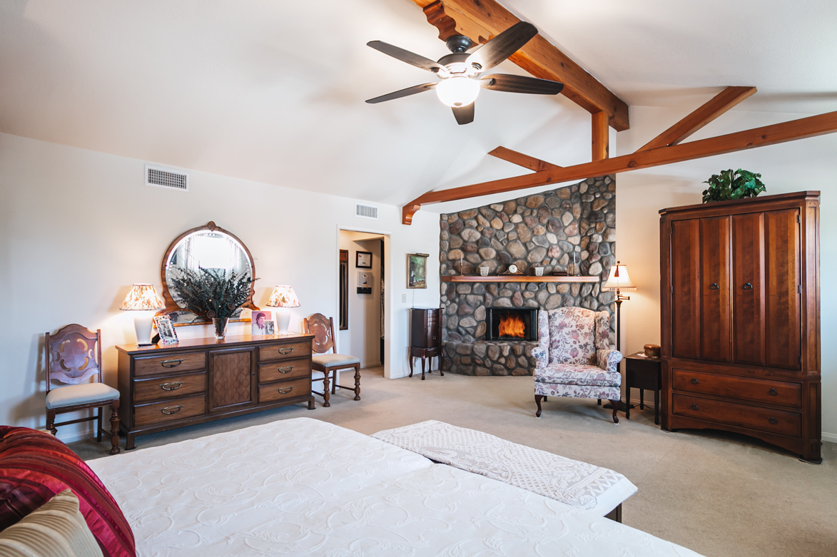 Spacious, emotional, immaculate - Ideal for multi generational or group living with a possible ADU opportunity. An incredible, versatile floor plan boasts a gorgeous great room style living room with wood-plank designed tile floor, a classic fireplace, recessed lighting, and open dining area. The near new custom remodeled kitchen features quality cabinets with pull out shelves, gorgeous quartz counters, undercabinet lighting, quality stainless steel appliances, and an expansive center island with more storage. There is an adjacent Butler’s pantry with extra storage and laundry hook ups for a second utility/laundry room. This home offers four comfortable bedrooms, four bathrooms, a separate wing with a large family room, second dining area and separate entrance. Ascend the wood railed staircase to the amazing and romantic upstairs Master suite. The loft area provides a perfect sitting area, office, library or exercise landing. The wood beamed cathedral ceilings accent the king sized dormitory enhanced by the rustic raised hearth stone fireplace, enormous ensuite full bathroom with stall shower, tub, dual sink vanity, toilet and bidet, and the incredible walk in closet. Don’t miss the adjacent balcony view deck for a relaxing morning cup of coffee or a romantic sunset sipping fine wine. Descend the stairs and continue out through the hallway to the main laundry room with extra storage. Exit to the attached two car garage with a practical storage niche and extra storage shelves. The artistically designed grounds bring charm and comfort to multiple picturesque and tranquil sitting areas with a fountain, a bird bath and beautiful lighting. Plus, there is a free-standing single car detached garage with a additional attic area that could be an extra ADU. Extra features include dual heating & A/C units, a standard gas water heater plus a tankless water heater, most newer dual pane windows, pleated shade window treatments, and so much more.