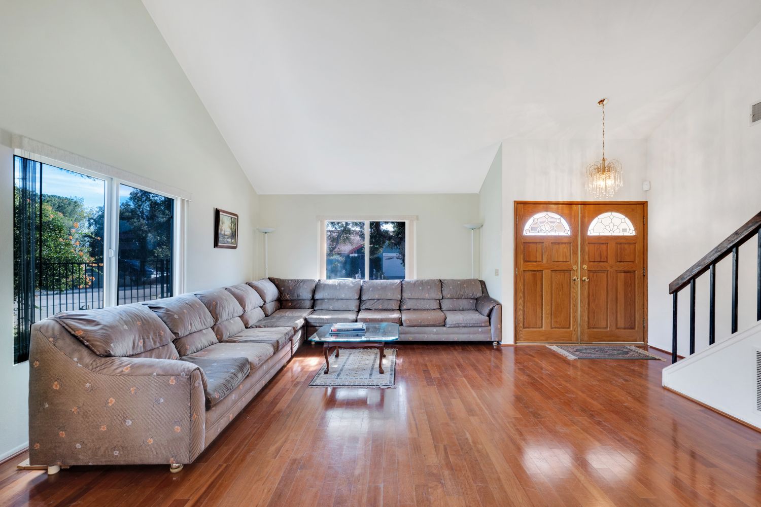 Lovely home in the highly desired Porter Valley Estates has just become available. As you enter the double doors you are greeted by hard wood flooring and a living room with vaulted ceilings. It's open to the dining room which features an adjacent wet bar. The kitchen was recently remodeled with Granite Counter Tops, wood shaker cabinets, and Samsung stainless steel appliances. The kitchen is open to the family room with gas/wood burning fireplace. The entertainer's backyard is located off the 13th hole of the prestigious Porter Valley Country Club. It is perfect for the avid gardener or golfer with plenty of room to build a pool. Currently there is a heated spa covered by a gazebo, a 3-hole putting green, a BBQ Island, Fire Pit, and 13 mature Fruit Trees. Downstairs has a bedroom which makes a good office or a maid's quarters along with a 3/4 bathroom and a separate laundry room. Upstairs the Master Bedroom Suite boasts a balcony with golf course and mountain views perfect for your morning coffee. The en-suite bathroom has a double vanity sink, a remodeled shower, two closets and is illuminated by a solar tube. The remaining 3 bedrooms have ceiling fans, dual pane windows and a full bathroom conveniently located between them. Situated in an award-winning school district and close proximity to the new high end shopping center "The Vineyards". Don't miss out!