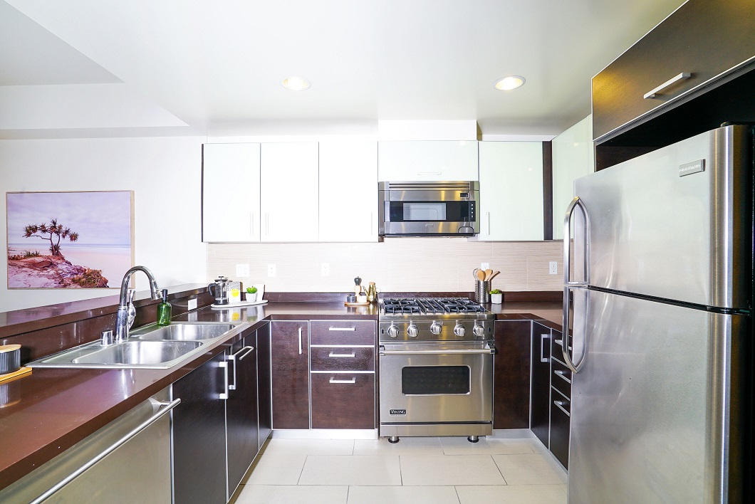 Gorgeous Tri-level townhome in 7 unit condo built in 2011. Three en-suite bedrooms. Half bath by home entrance. Stunning open kitchen with pure chocolate brown qortstone counters, elegant tiled backsplash, custom glass cabinets and Viking appliances. Gas fireplace in the living room. The primary bedroom has his and hers walk-in closets, bath with dual sinks, and separate tub and shower. Downstairs has 2 large rooms each with full bath. Perfect for bedrooms or office. Other perks of this home include an inside laundry room, pre-wired cable and alarm system. It has separate central A/C systems. The home has 2 balconies (one has extra storage closet) Walking distance to the famous Westwood Charter Elementary. The home comes with 2 parking spaces tandem. Building amenities include: guest parking, new camera security system and rooftop sitting /picnic area. Close to Westfield Century City Mall and UCLA. HOA fees include gardening, weekly public area cleanings, trash and water.