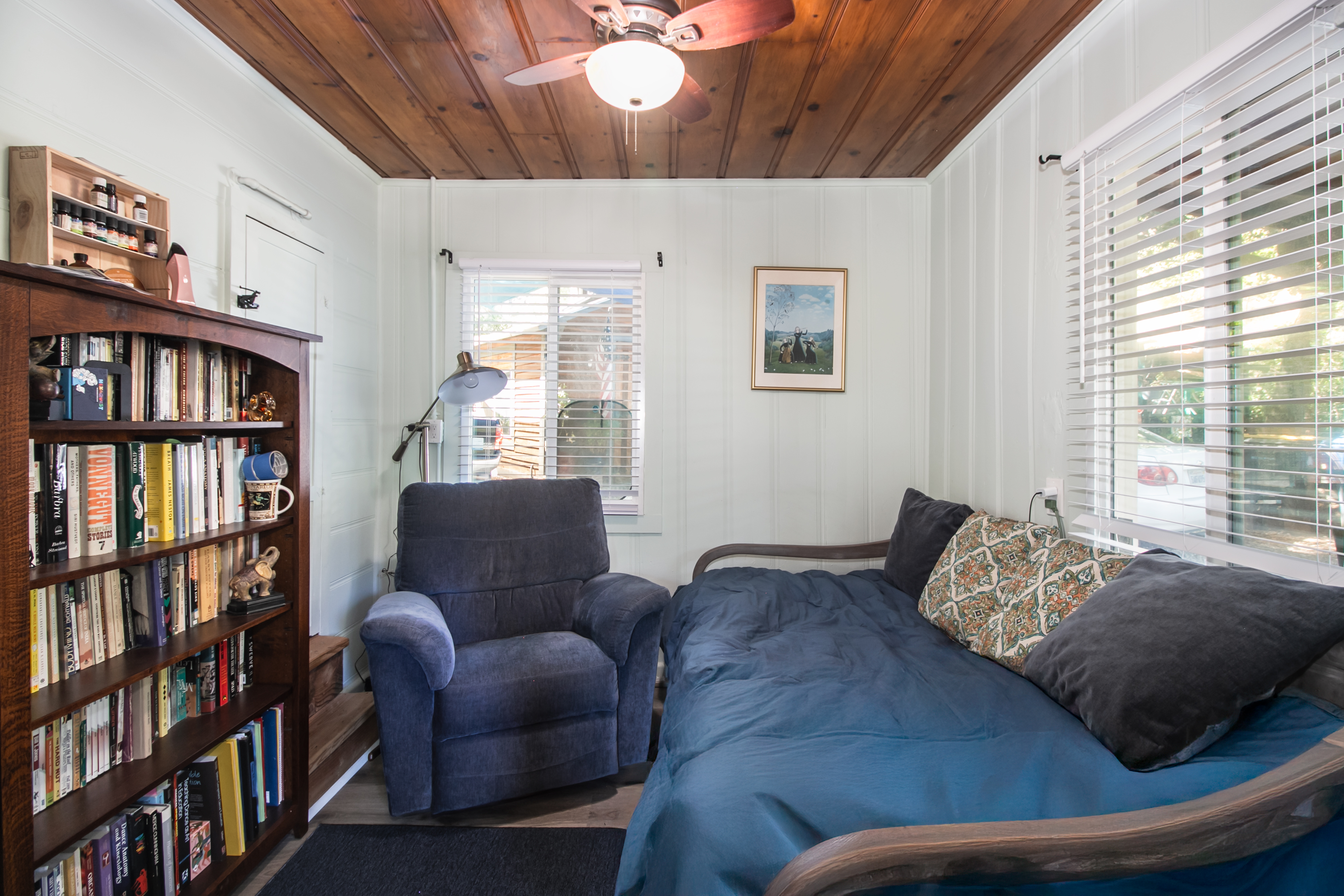 Who says you can’t have the best of both worlds? Welcome to your peaceful cottage, providing tranquil living just minutes away from all the San Fernando Valley has to offer. The property features a peaceful fountain upon entry, and comes complete with an additional bedroom or office, laundry room and ample storage. Both bedrooms feature newer wood floors and wood paneling. The first room features an entry to an attached loft. Just let your imagination flow with the possibilities! Relax in the family room as you enjoy the view of nature outside. The dining area provides a flexible room for dining and entertaining guests. The kitchen features an abundance of counter space, with new granite countertops, stainless steel appliances, a new Monogram induction range top, a tile backsplash for the stove and sink, a dishwasher, and a Ecowater reverse osmosis system. A large laundry area provides space for side-by-side appliances. The bathroom is complete with stone and tile finishes, updated plumbing, a larger shower and custom sink. The incredible yard features a custom wood barn that can be used as more livable space or for storage. There is also a covered patio with a seating area to enjoy alfresco dining, or to simply relax and take in the incredible nature surrounding you. The newly landscaped grounds include rock formations, wood retaining walls, new artificial turf with a 15-year warranty, and numerous indigenous trees and plants to enjoy. Be sure to bring your electric car as the house is fully set up for charging. Your slice of paradise is ready for the taking!