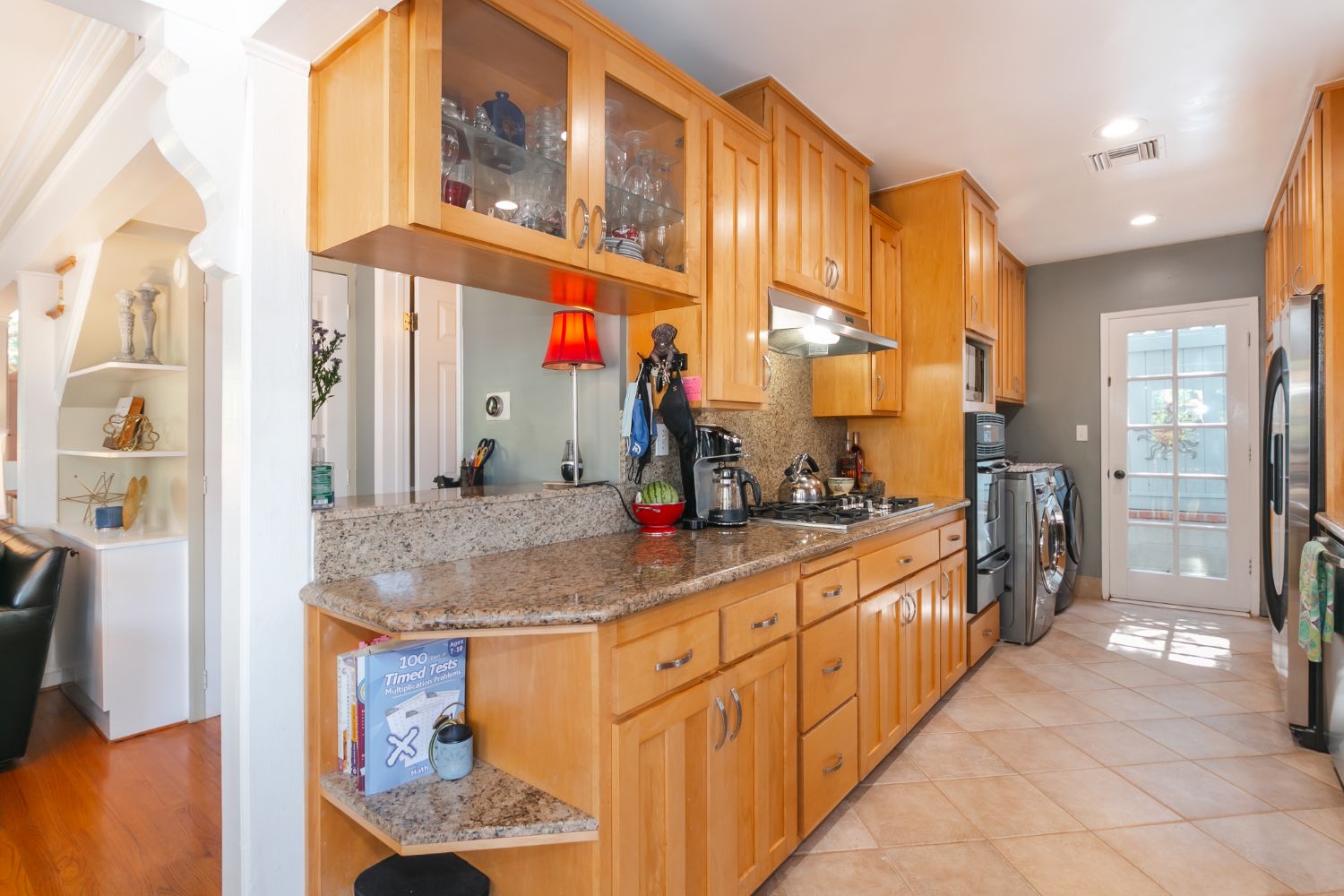 Nestled well south of the boulevard in the hills of Woodland Hills amongst the oaks, this 3 bedroom, 3 bathroom serene retreat feels miles away from the bustling city yet is mere minutes to everything. Windows and French doors aplenty allow natural sunlight to fill the rooms and showcase gleaming hardwood floors throughout. Appreciate the sights and sounds of nature from 2 upstairs balconies. Enter the living room where a beautiful fireplace with a raised hearth is perfect for sitting by the fire, or looking out the many windows and taking in the tranquil setting. The dining room area boasts two sets of French doors looking out onto the yard. Galley style kitchen with maple cabinets, plenty of storage, stainless steel appliances, granite counter tops and tile floors. The laundry area is conveniently located at the back of the kitchen. Travel upstairs to the master suite with inviting balcony, walk in closet and attached bath. The second bedroom features a large closet and an en suite bathroom. Walk across to the third bedroom with two closets and access to two balconies. All bedrooms have closet systems for ample storage, ceiling fans, wood floors and lots of windows. The second and third bedrooms have views that evoke a treehouse feel. All rooms have smooth ceilings, crown moldings and baseboards. Walk outside to the yard through the dining area and enjoy the peaceful patio for outdoor dining and relaxing. Large flat rear yard has many possibilities; currently used as a play area. The square footage is deceiving. Plenty of room for a garden, grassy area, or drought tolerant landscaping. The choice is yours. Also, take advantage of the many hiking and biking trails in the Santa Monica Mountains Recreation Area from dirt Mulholland just steps away. A must see!