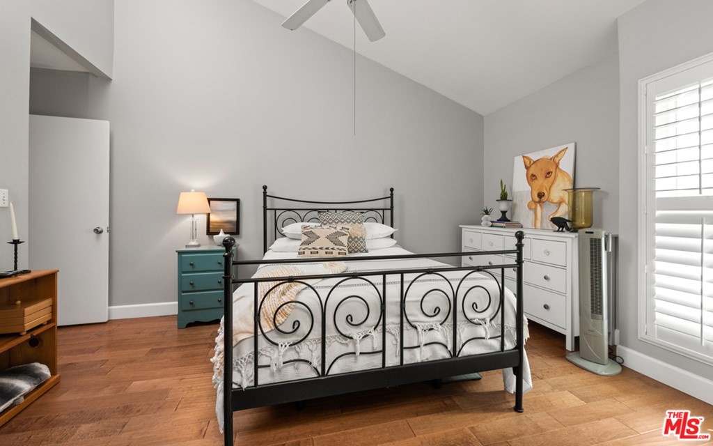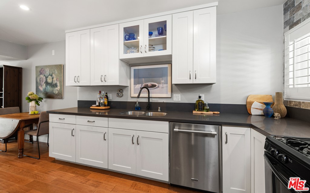 Run! Don't walk to this Stunning, Turnkey, Courtyard Townhome in coveted Valley Village!!! Located in Colfax Charter School and Walter Reed Districts. Enjoy the lovely appointed entry that leads to the lush courtyard and soothing fountain. This beautifully updated two story unit has an open floor plan you can see thru from the entrance to the Balcony. There are gorgeous hardwood floors throughout the entire unit. The updated kitchen has quartz countertops and stainless steel appliances. The Dining area leads into a light filled living room with a tranquil balcony. A convenient 1/2 bath is located downstairs. Upstairs are two bedrooms each with updated bathrooms. The primary ensuite bedroom has a vaulted ceiling with fan and a walk-in closet. The second ensuite bedroom has its own separate entrance. The many amenities include all appliances, stackable W&D, and Plantations Shutters. Multiple Skylights allow the space to be bathed in light. There is a Refreshing Community Pool. A gated entry leads to the two covered tandem parking spaces and private enclosed additional storage This is a Top floor unit with no one above. The HOA is $369.00 a month and includes Water, Gas and Earthquake Insurance. Welcome Home!