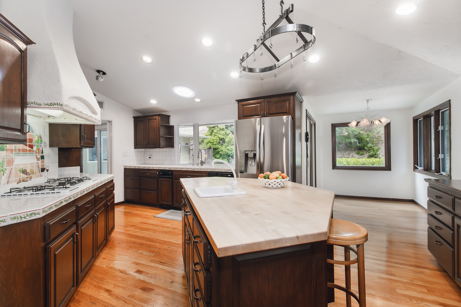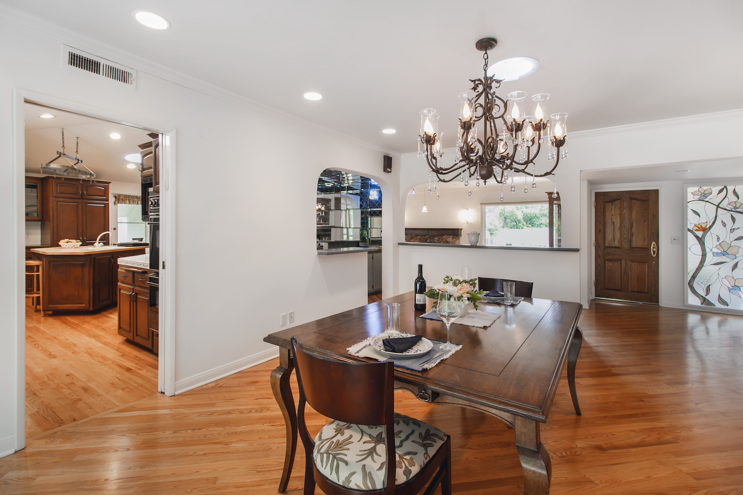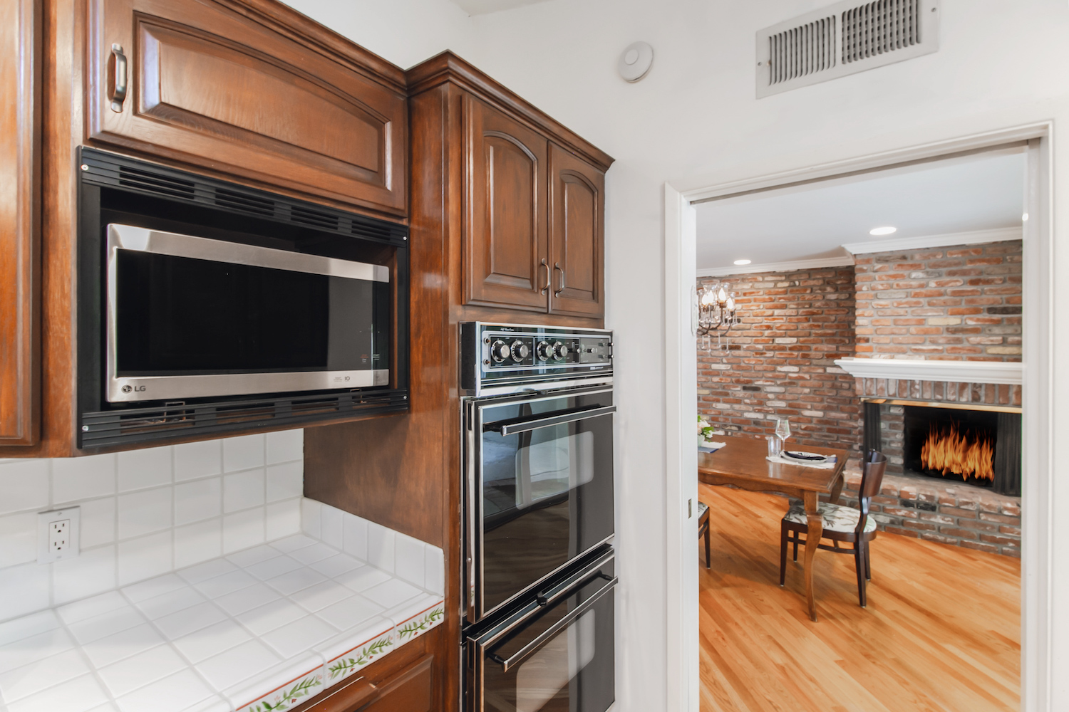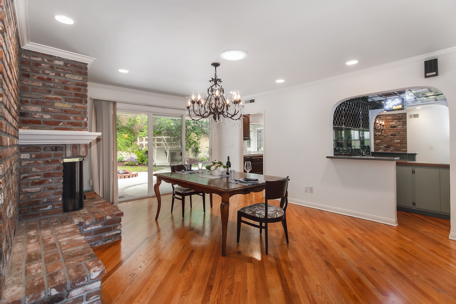 South of Ventura Boulevard, this charming Ranch Style home is nestled above the street on a quiet cul-de-sac. Step into your spacious Living Room with the first of your home’s two fireplaces, elegant hardwood floors, and built-in custom wood cabinets. Your Dining Room, featuring a wet bar and stone fireplace, is an ideal space for entertaining guests while enjoying the serene view of your backyard. Your kitchen is a haven for culinary enthusiasts, offering ample counter and cabinet space, a generous island with a vegetable sink, barstool seating, and a cozy and bright dining area. Your well-appointed master suite boasts two generously sized closets, one cleverly converted into an office space. Indulge in the master bathroom, complete with a soothing jacuzzi tub, large glass shower and dual sinks. Step outside to unwind on the patio or in the tranquil jacuzzi while enjoying your peacefully landscaped yard, a delightful way to unwind at the end of a long day. |