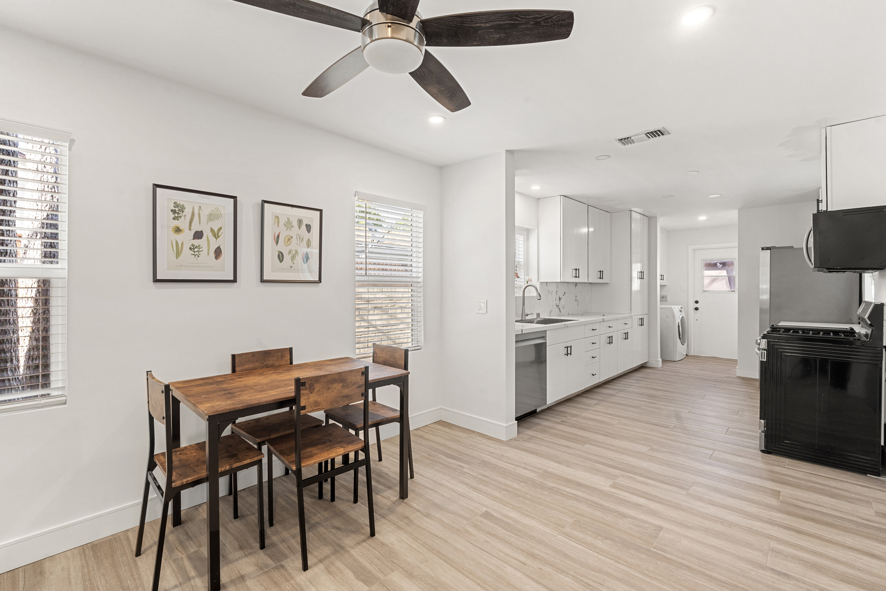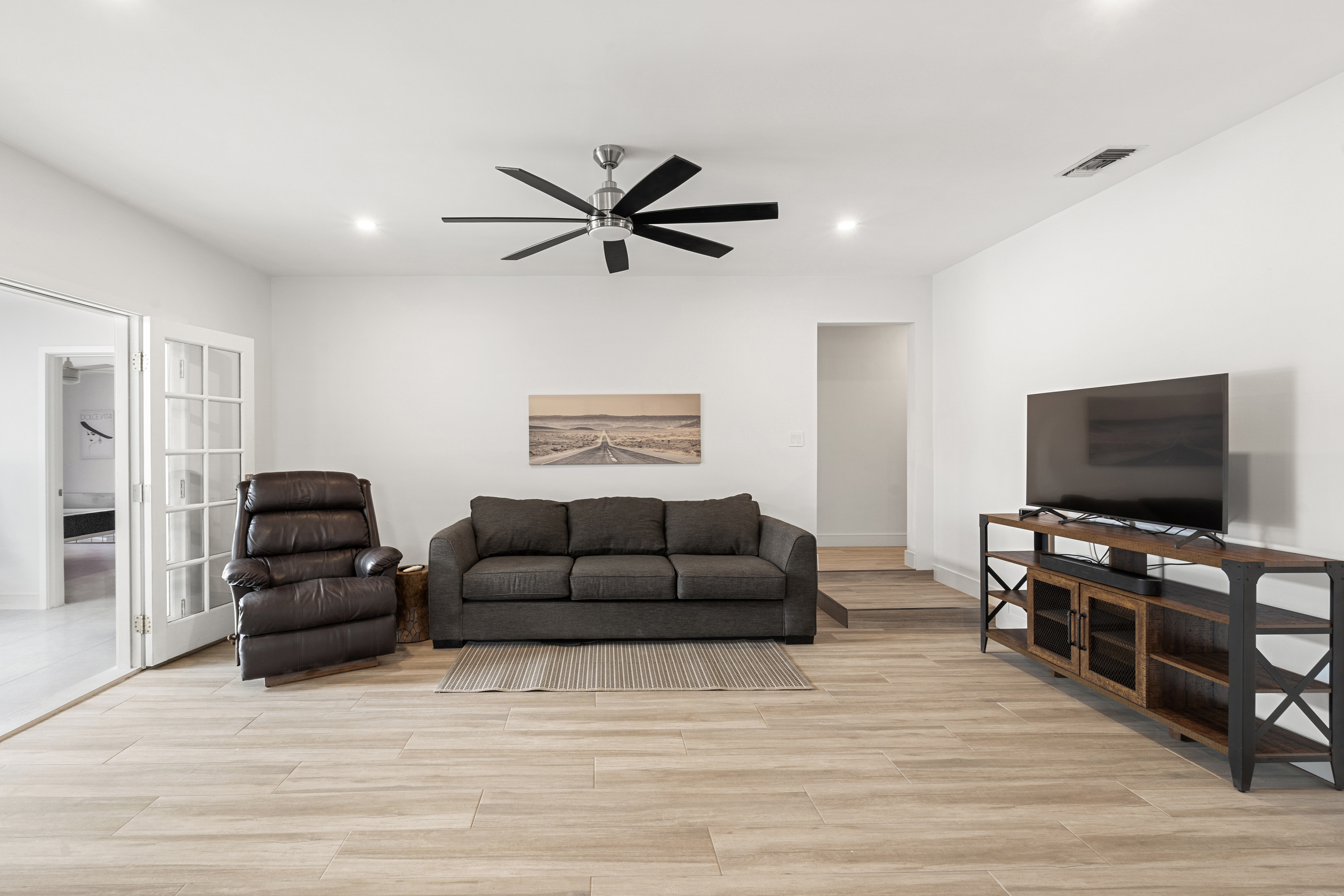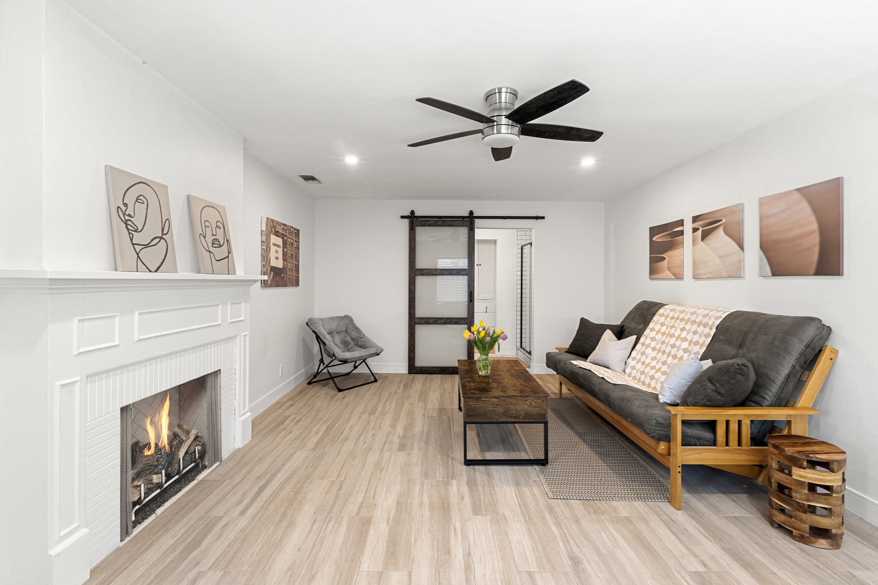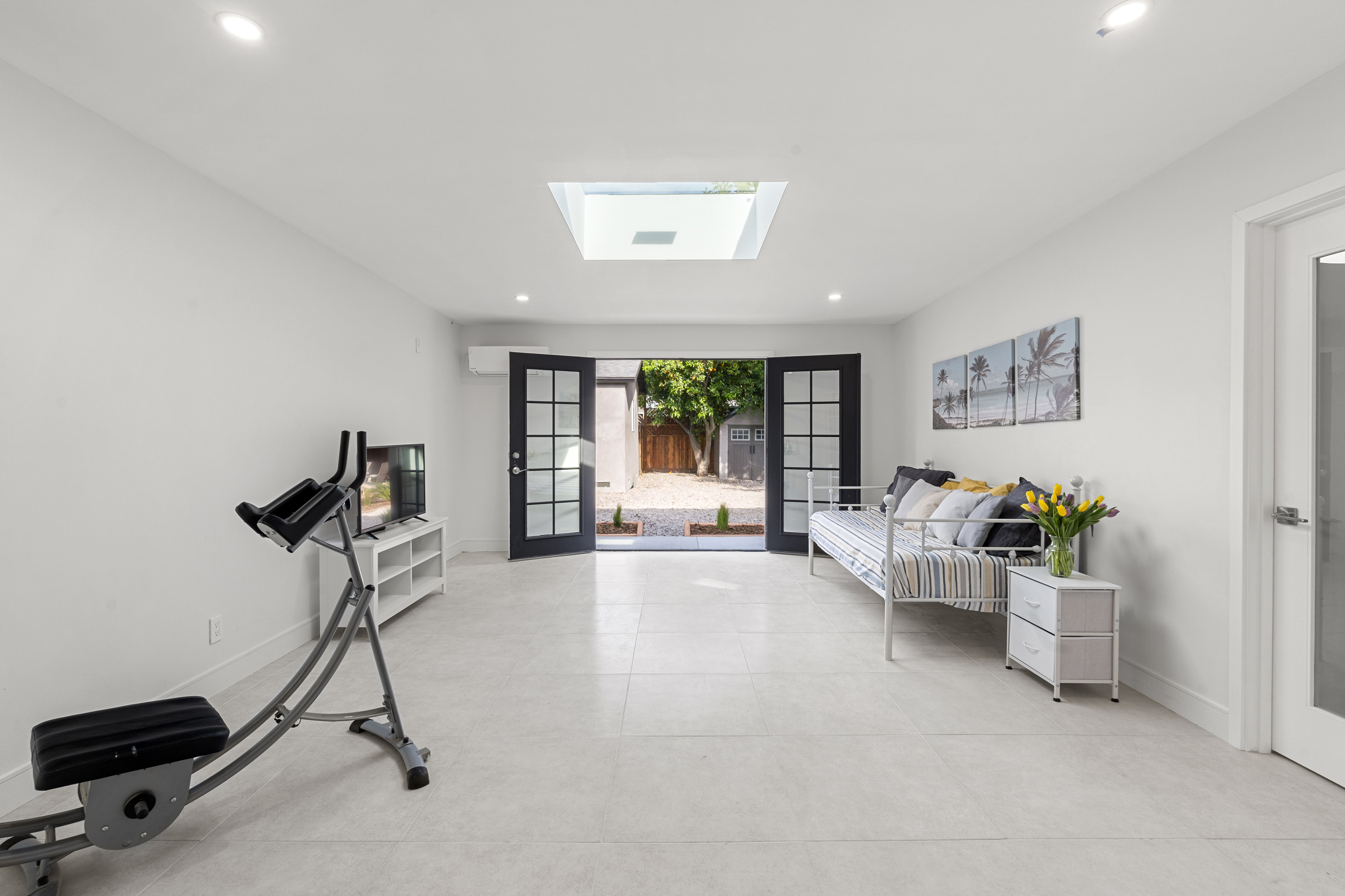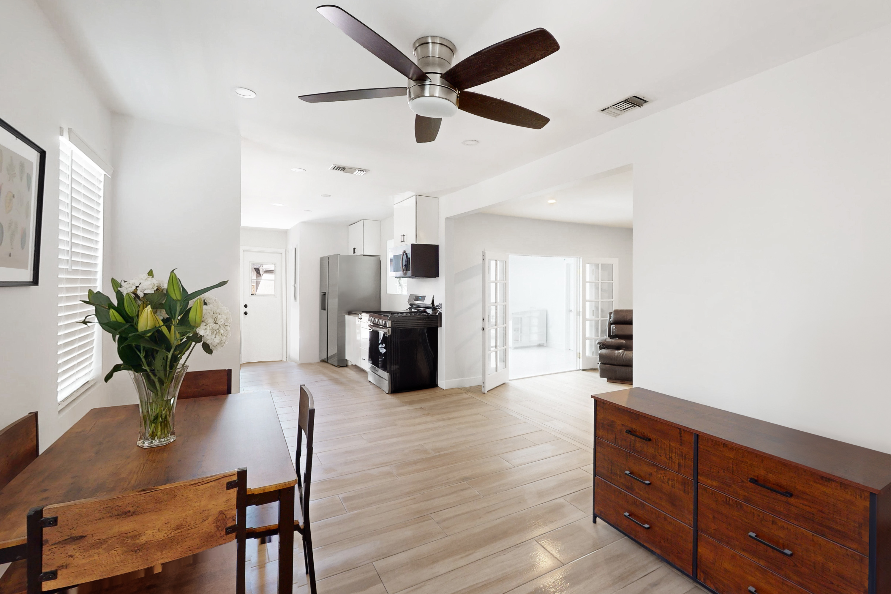 Welcome to 5432 Morella Ave. in sought after Valley Village. This beautifully remodeled residence boasts 5 bedrooms and 3.5 bathrooms of seamless contemporary style. Approach and enter through the main gate, to your very own private Urban Oasis and leave the world behind! Upon entering the approx. 2,146 main house, one is greeted by the abundance of natural sunlight that streams through new windows onto the porcelain tile floors. The 1st of the 2 fireplaces adorns the central Living Room. The dining area flows into the open concept kitchen, featuring all new appliances and quartz counter tops. The stepdown family room/great room features a dramatic stacked Ledger Stone fireplace. Continue through French doors into the ample sunroom with skylight. Additional French doors lead out to the backyard. The en-suite primary bedroom connects to what could be a nursery or home office with French doors out to the yard. Down the center hall you will find another bedroom and bath. Central heat and air ensuring year-round comfort, while mini splits provide personalized climate control in the back additions. The interiors exude warmth and openness, creating an inviting ambiance. The property also includes a sleek, beautifully remodeled approx. 635 sq. ft. 1 bedroom 1 bath ADU with its own private patio. The ADU has separate gated private entrance. This amazing enclave sits on an expansive 8100 square foot lot with an 8ft. privacy fence in the backyard and mature Fichus hedge in the front. Mature orange and tangerine trees and completed with xeriscape, creating a harmonious fusion of form and function requiring minimal maintenance and maximum beauty. This entertainer's paradise includes a perfectly placed gazebo to unwind beneath its sheltering canopy, while a fire pit area invites you to gather around its flickering flames sharing stories and laughter long into the night. This private retreat is perfect for intimate gatherings or peaceful moments, waiting to welcome you home.