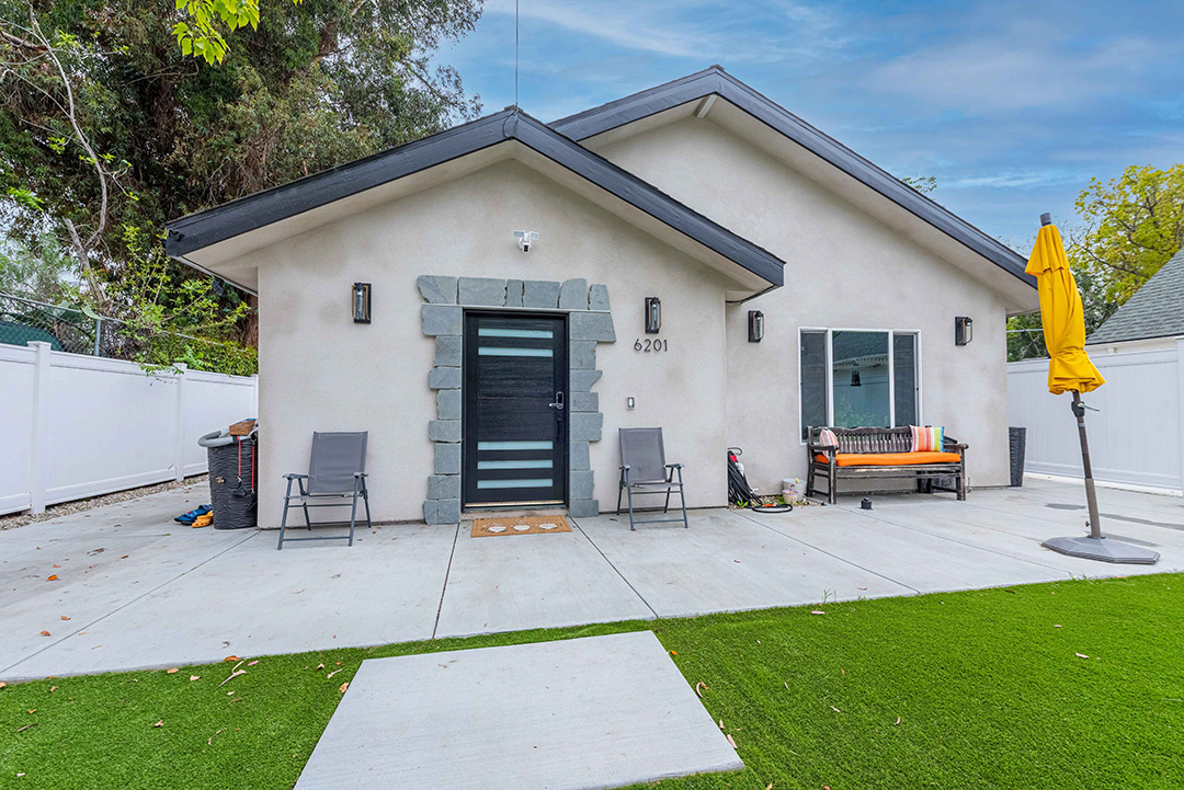 Elegant Single Family with a Newly Built ADU (Guest House) on a 21,500 sqft of Lot, in a Quiet Street in Tarzana! The Main House Consists of 3 bedrooms, and 2.5 baths and an Attached 2 Car Garage. The Approximately 1200 sqft Permitted ADU is Separated from the Main House, and it Consists of 3 Bedrooms and 2 Baths. Both the Main House and the ADU have Separate Electric Gates. The Main House has a Ranch Style Curb Appeal Accented by Brick Siding and a Covered Brick Porch! The Spacious Living Room of the Main House has a Brick Fireplace. The well-Appointed Kitchen has Stainless Steel Appliances Including a Double Oven and Gas Stove, Tumbled Marble Counters and a Breakfast Bar. The Kitchen Opens to a Large Family Room with French Doors to the Backyard! The Formal Dining Room has French Doors that Opens to a Large Covered Patio, Perfect for Entertaining Throughout the Year! The Master Suite has a Bay Window and a Bathroom with a Carrara Marble Counter and Travertine Floors! Three Large Bedrooms with Lots of Closet Space! Updated Hall Bathroom with Carrara Marble Counters, Stone Floors and Hand-Painted Tiles. There is a 1/2 Bathroom off the Laundry Room with a Pedestal Sink! Many Upgrades Include Gorgeous Wood Floors, Dual Pane Windows, Plantation Shutters & Crown Moldings! Plenty of Storage Including Attic Space Above the Garage! This Amazing Home Sits on a 190-foot Wide Lot and has Plenty of Room for all Your toys! Seller has Permit for Adding the 500 sqft Garage to the Main House. Centrally located in Tarzana, Walking Distance to the Parks, Shops and Entertainment. A MUST SEE!