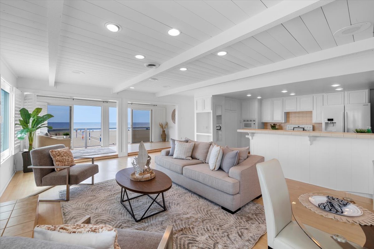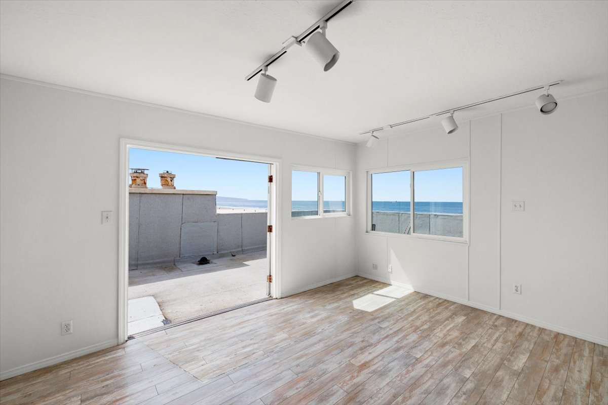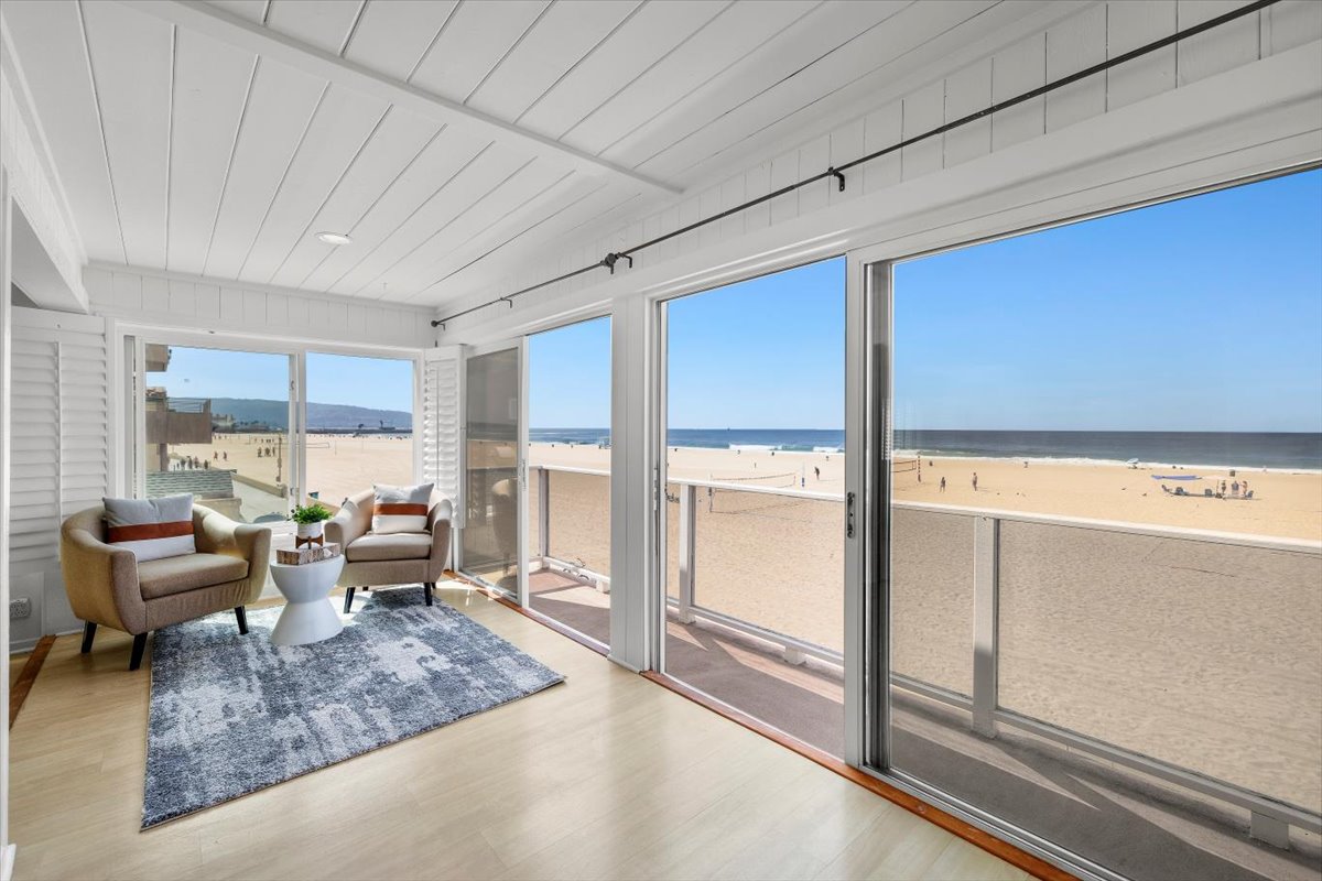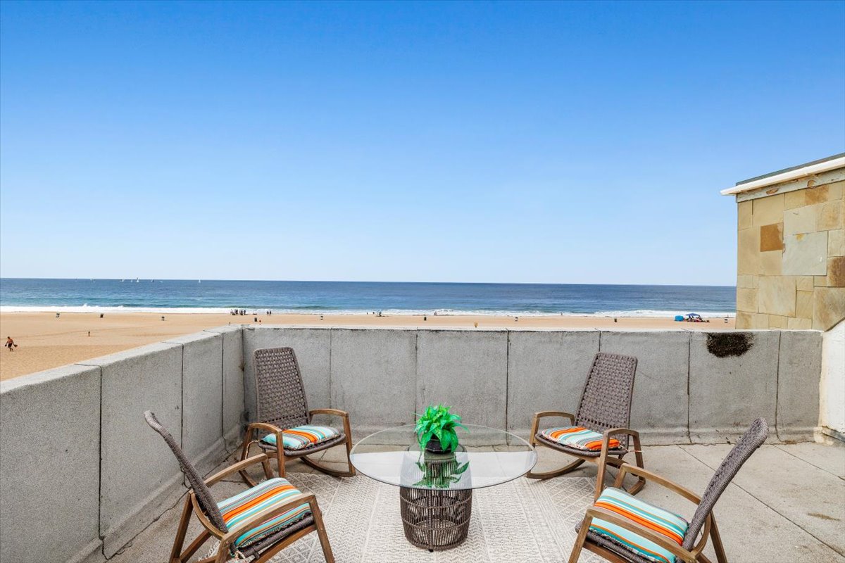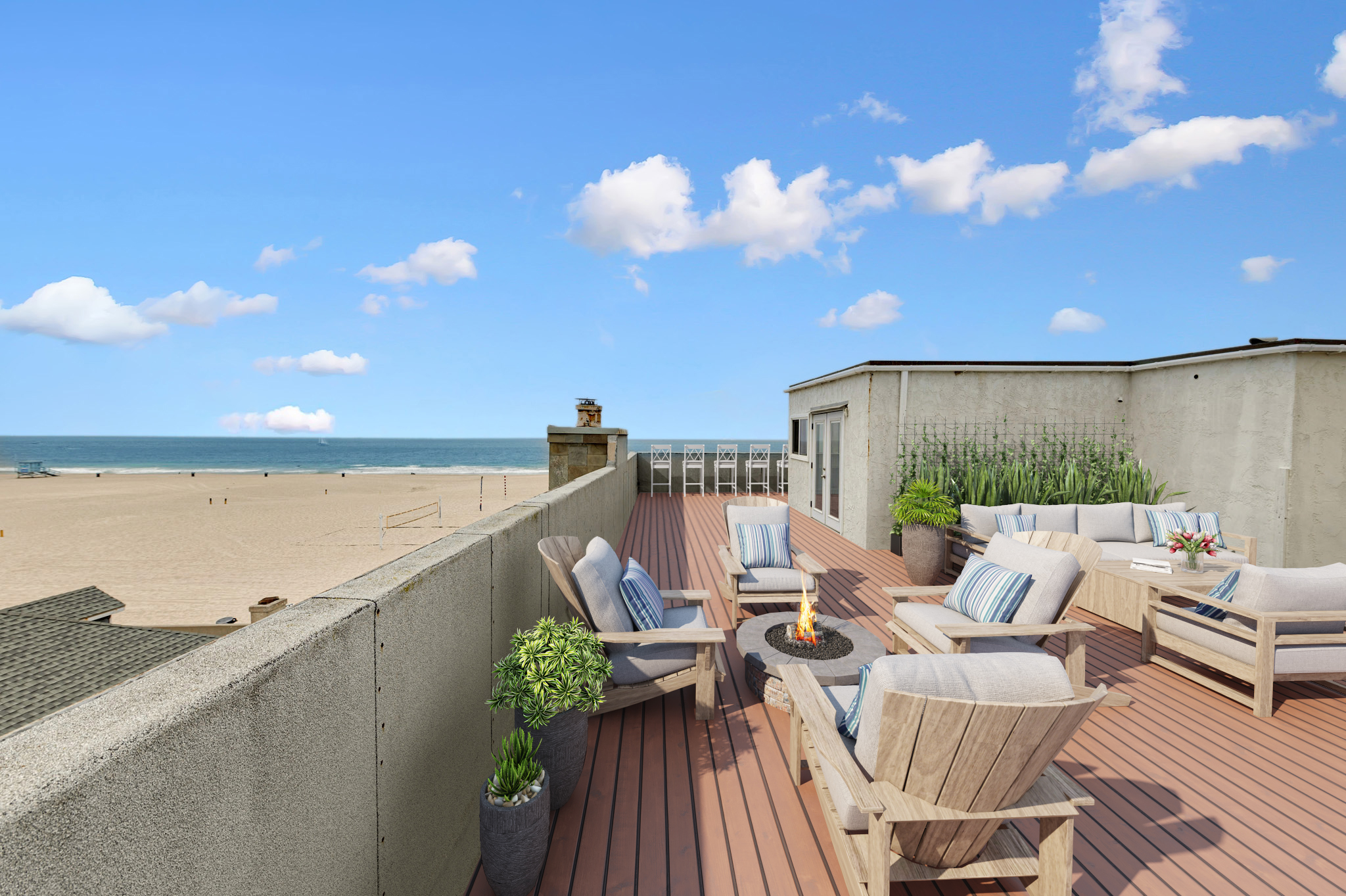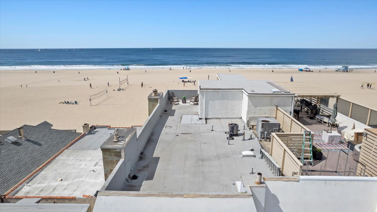 Live the quintessential Hermosa Beach lifestyle at 634 The Strand. Enjoy the sun, surf and crisp ocean air every day with this rare oceanfront condo. With stunning panoramic views from the balcony and private roof deck, this 3 bedroom, 2 bath top floor unit is ready to move in with minor cosmetic upgrades, and is also the perfect canvas to create your dream beach house with a complete renovation. The light and bright living room and dining area are a picturesque setting for entertaining. Retreat to the bedrooms and fall asleep to the sound of crashing waves, with water views from every window. The primary bedroom features an en-suite bathroom, fireplace, two closets and a separate entrance. Upstairs is your very own exclusive roof deck with a bonus room (12x15), ideal for an office or guest room. The expansive rooftop has unlimited potential to create an outdoor living space that's fit for dining al fresco and enjoying the California sunset. The quiet 4-unit building has a secure gated garage with 2 side-by-side spaces, storage, 3 guest parking spots and shared use of the ground level deck and grass yard. Minutes to Hermosa Beach Pier, Redondo Beach, shops and restaurants. Award-winning Hermosa Beach School District. Buyer to verify the accuracy of all information. Some photos are virtually rendered.