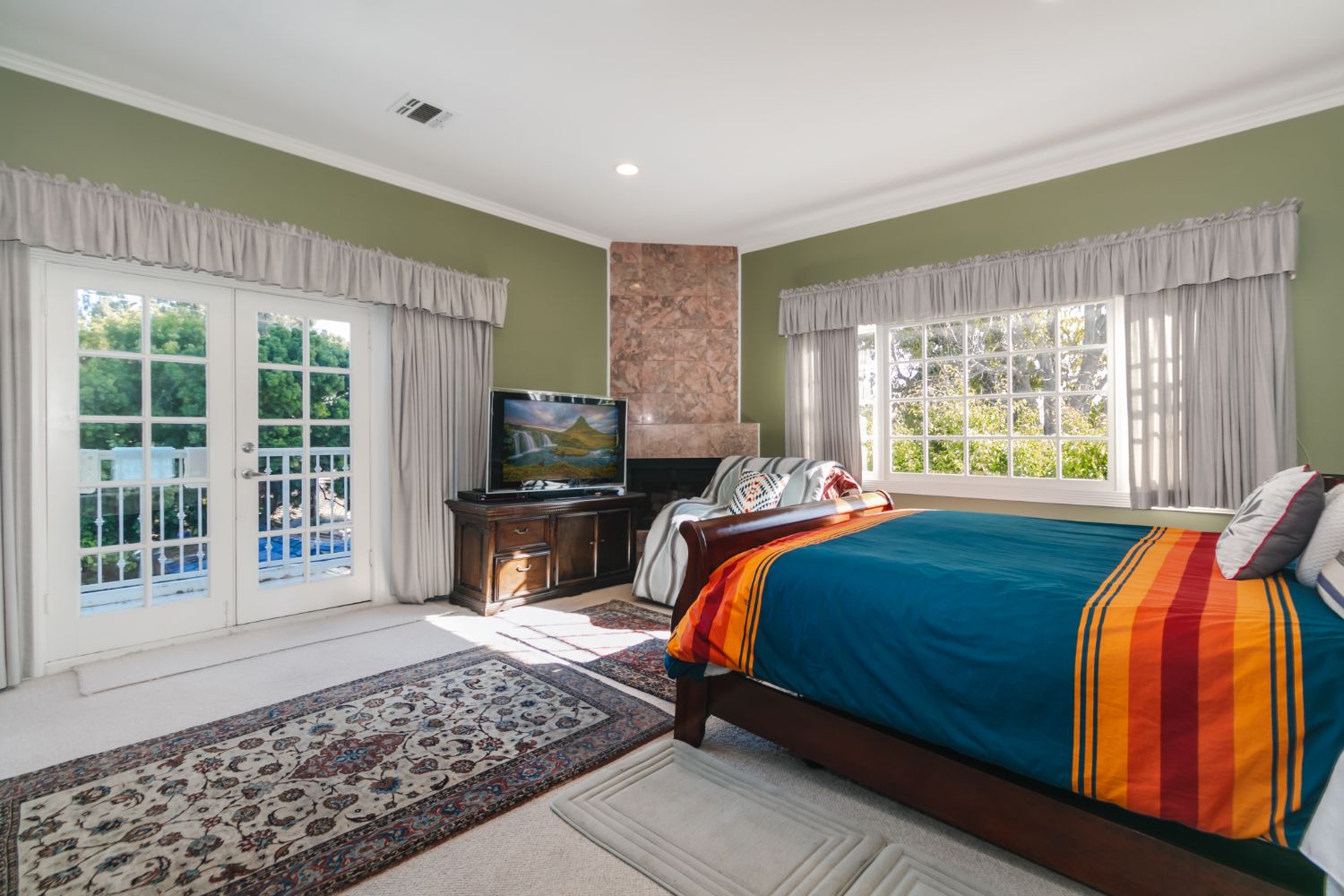 Gorgeous 2 story home- ready for a growing family. Natural light throughout, high ceilings on both floors. 5 large bedrooms, including a large master suite with fireplace, overlooking the pool. The Master bath includes a large personal hot tub, sauna shower. Separate bedroom and bath downstairs, with individual entry into the home.